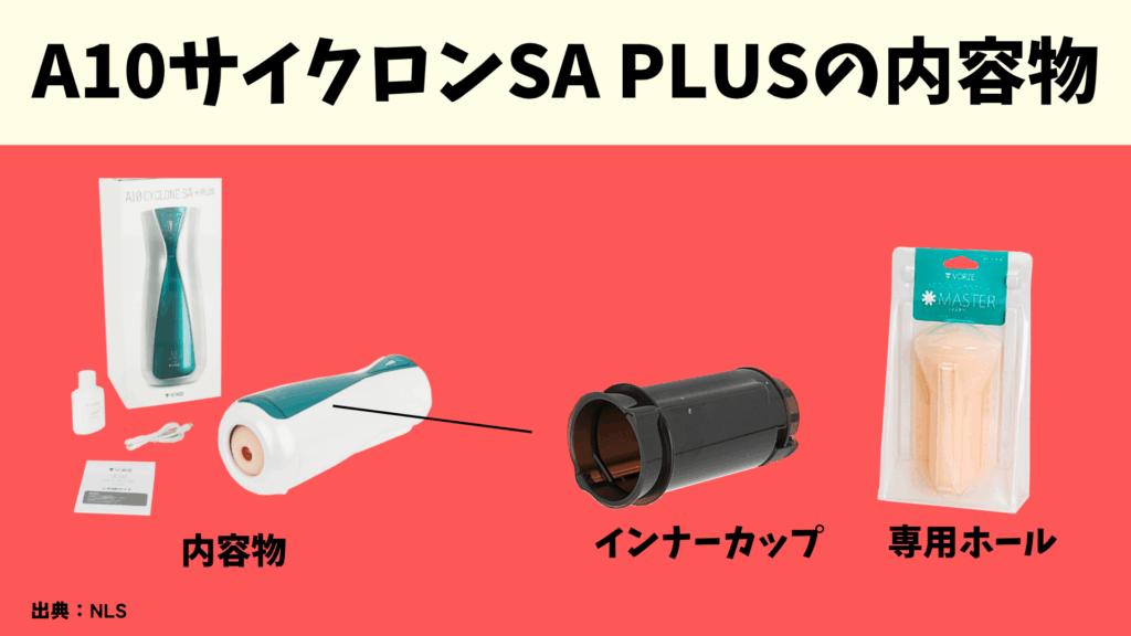 A10サイクロンSA+PLUSはオナホールとして価格は高いですが、丁寧に使えば数年単位で使用可能なコスパの良い機器です(インナーカップなどの付属品はNSLで個別に購入可能です)。
