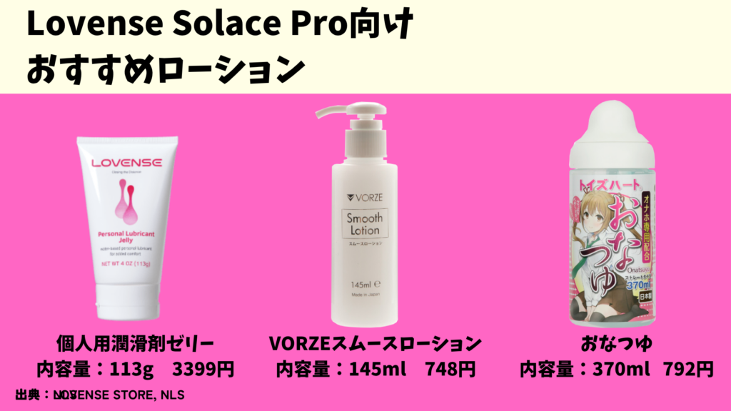 そこで今回の記事では、Lovense Solace Proに使えるアクセサリー・オナホール・ローションを紹介したいと思います。
