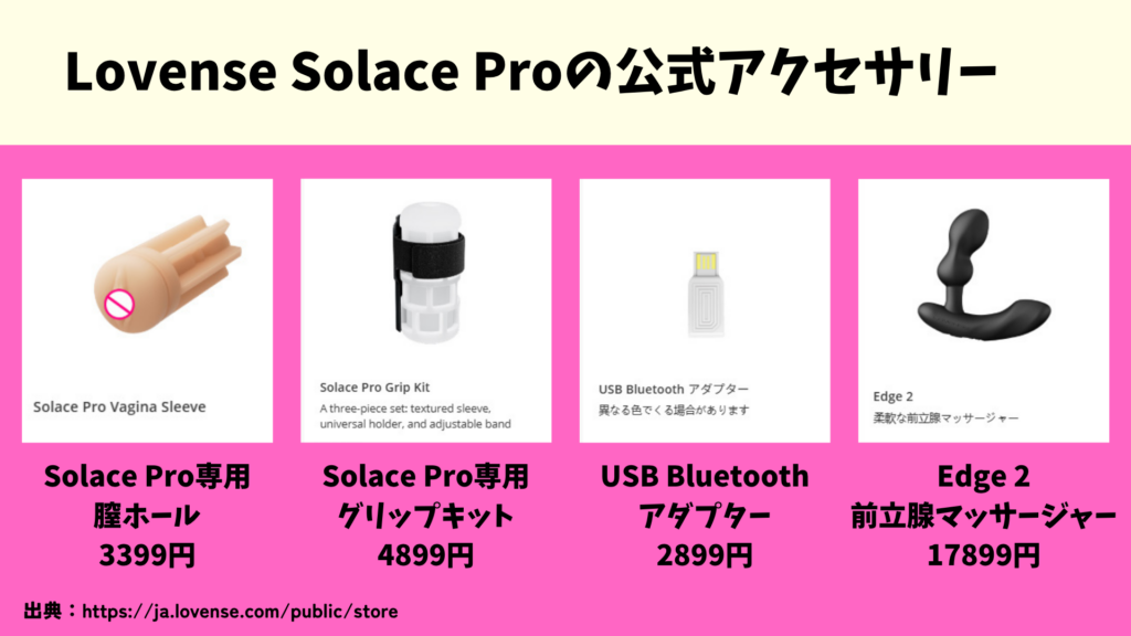 まず、Lovense Storeで販売されているSolace Pro関連の公式アクセサリー・関連グッズを紹介します。
